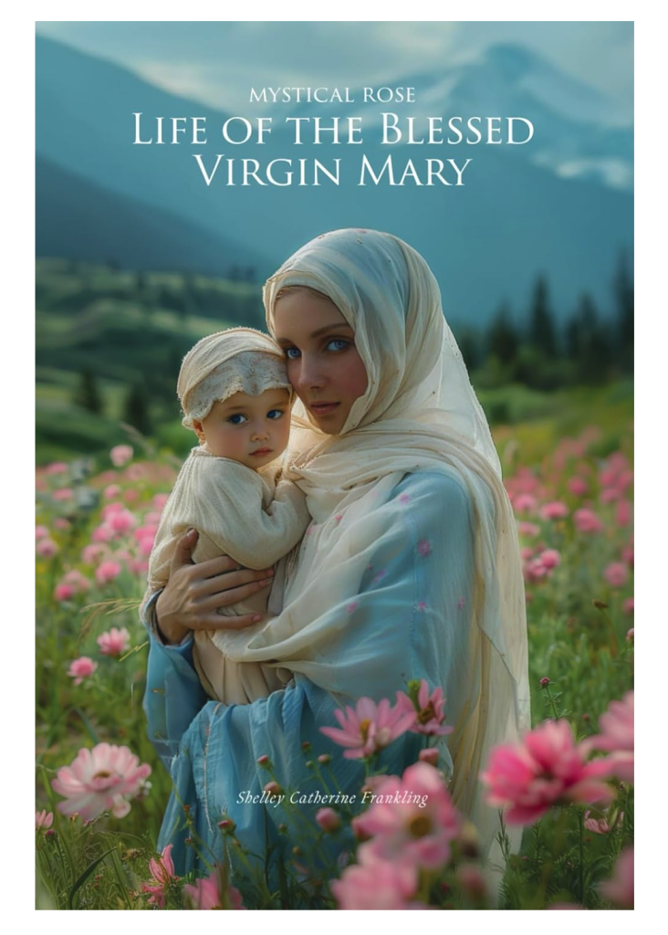 Adventuring into the format of a graphic novel Mystical Rose the Life of the Blessed Virgin Mary’s is 294 pages of color images woven with hand selected biblical scriptures describing each moment, from conception to natural birth. Including the story of her parents, Saint Anne and Saint Joachim to the annunciation with the Archangel Gabriel, her visit with her cousin Saint Elizabeth, to her marriage with Saint Joseph, and their journey from Jerusalem, to Egypt and return to Nazareth until Jesus leaves home.